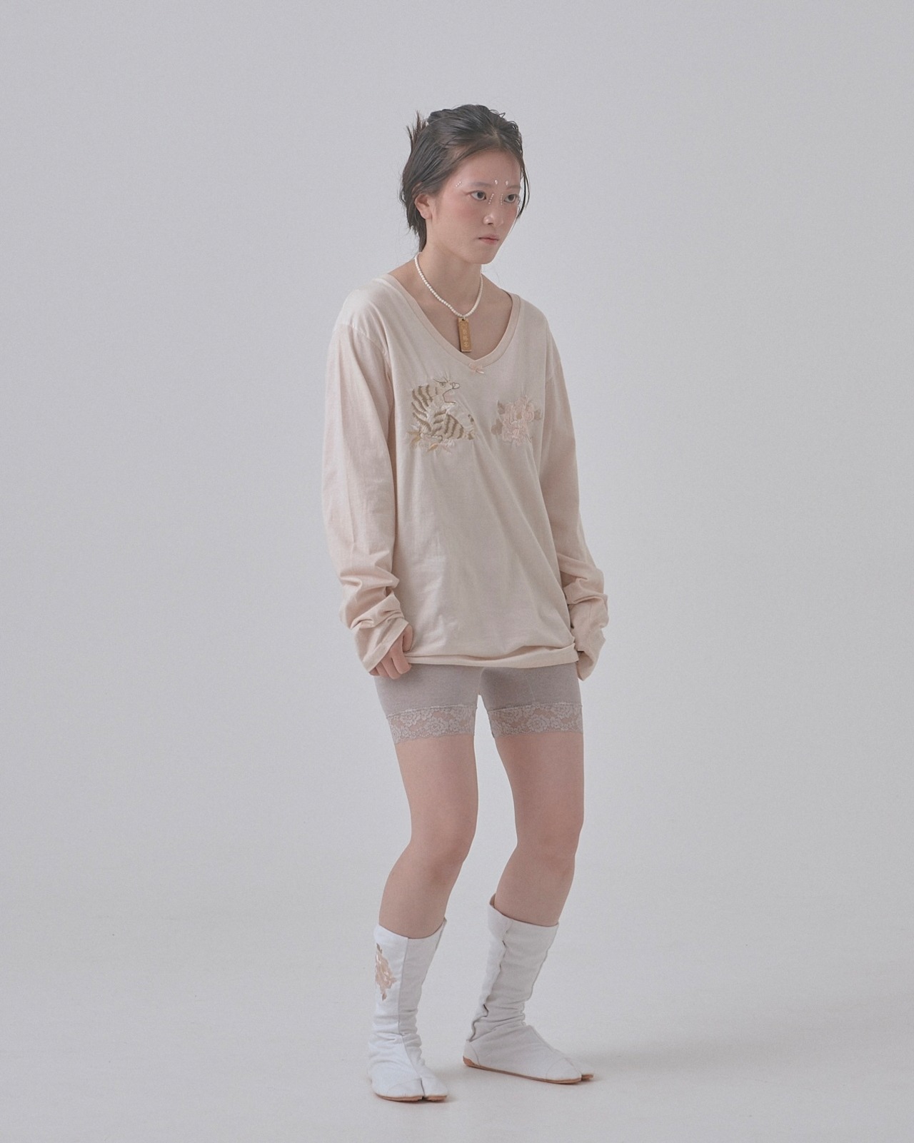 スカジャンみたいな虎と牡丹の刺繍を、淡く上品に。
